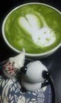 みなとがラテアートにはまった。オイラには抹茶ラテを入れてくれる。