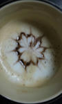 みなとが最近はまってる「ラテアート」。ほわほわのミルクが余ってたんでコーヒーに貰った。