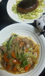 皿うどんと煮込みハンバーグ。